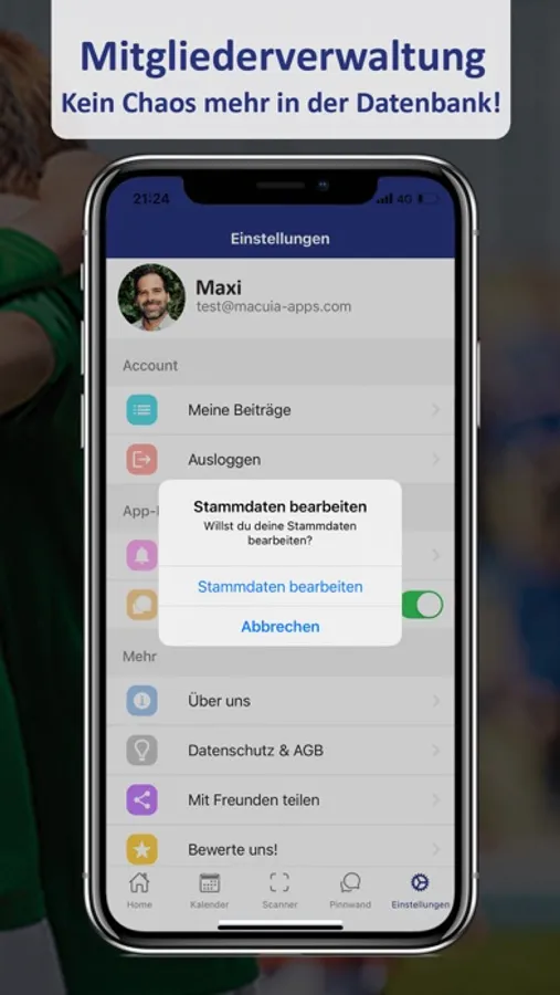 App sofort kann jeder seine Daten jetzt selbst über die App pflegen.