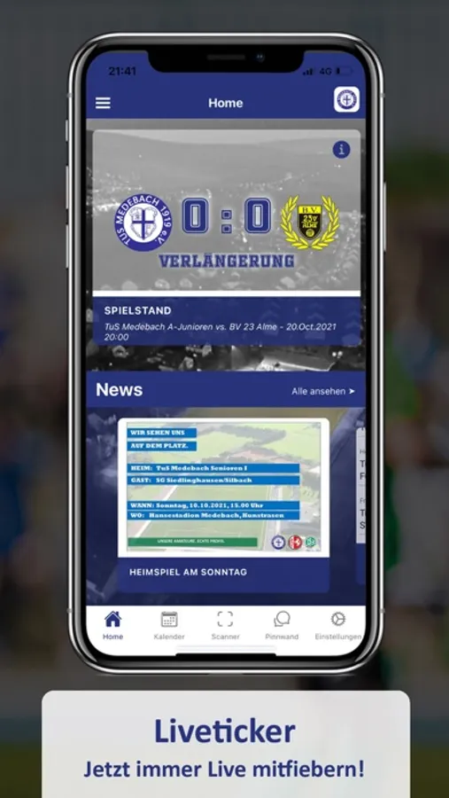 Weiterhin landen alle News, Termine, Fotos, Social-Media-Inhalte und Infos rund um den gesamten Verein direkt in deiner Hosentasche.