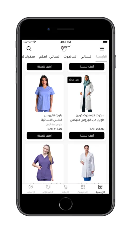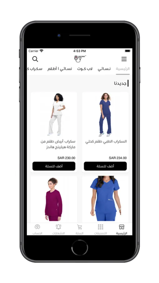 يونيفورم بلس واجهة تسوق الزي الطبي ، الخيار الأول للمارس الصحي في السعودية .