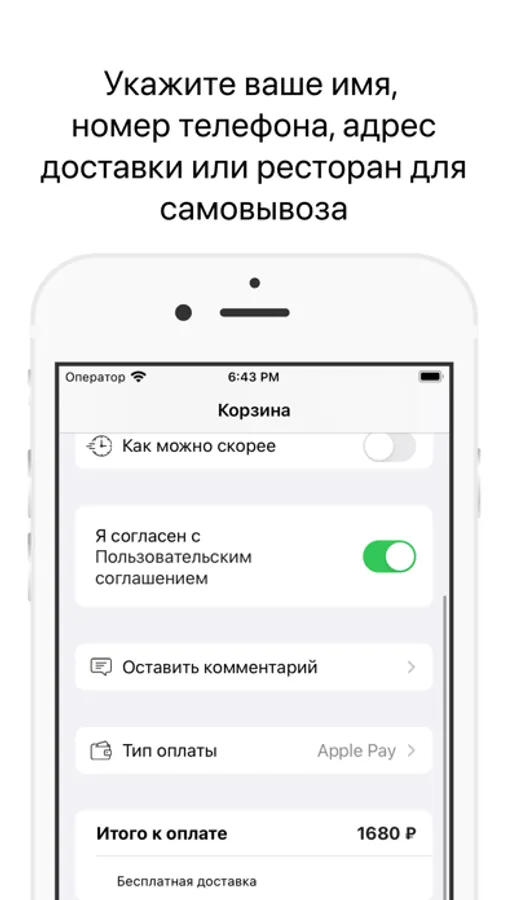 На экране заказа добавьте свою контактную информацию для первого заказа: Имя, Номер телефона и адрес электронной почты, чтобы получать уведомления об оплате.