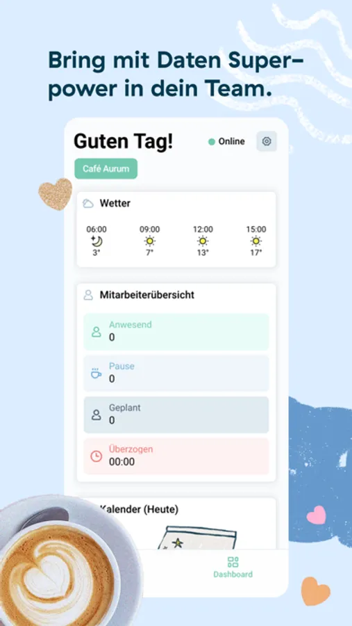 **Alle Infos auf einen Blick: Wetterdaten, Mitarbeitenden-Übersicht & Kalender**