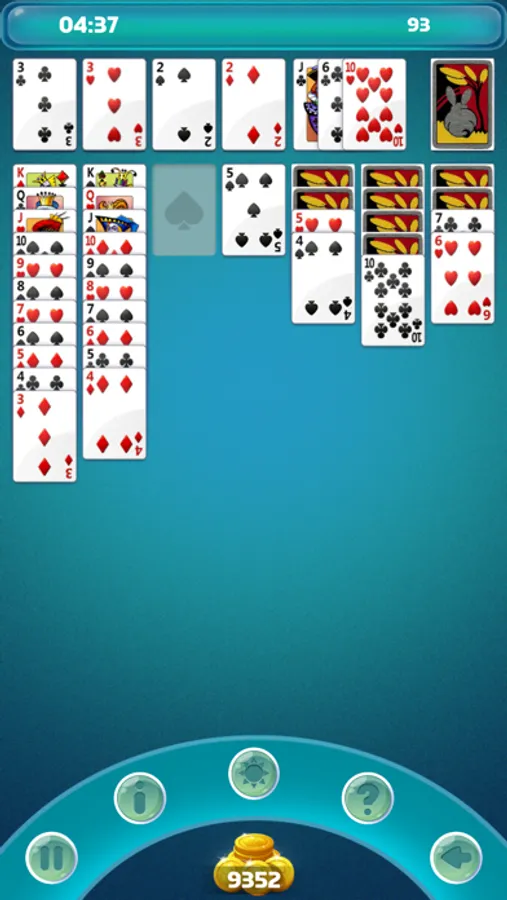 Card can be moved by dragging and dropping a single card or a group of cards. Card can be dragged from the waste pile, foundation pile and tableau columns. Card can be dropped on the tableau columns and the foundation piles. Tapping a card will move it to the foundation pile of it is a legal move. A single tap on the stock pile will turn over 1 card and display 3 cards.