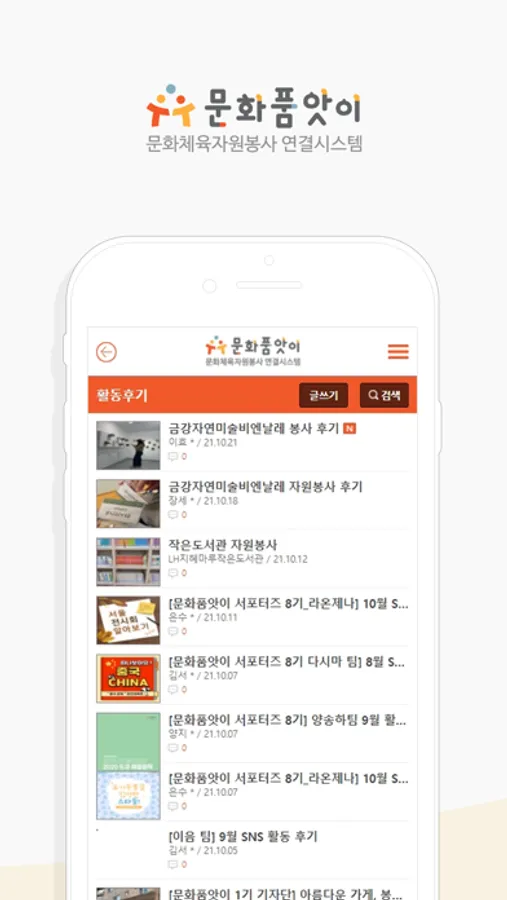 문화품앗이(문화체육자문화품앗이(문화체육자원봉사 연결시스템)는 문화체육관광부의 문화체육자원봉사 활성화 정책의 일환으로 만들어진 문화체육자원봉사의 수요-공급 연결시스템으로 현재 한국문화원연합회가 책임 운영하고 있습니다.