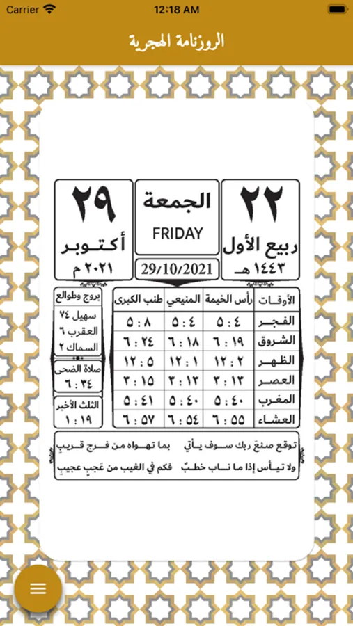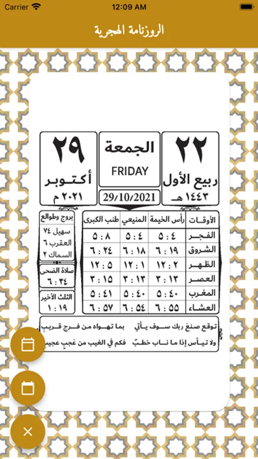 The Hijri Calendar of the Emirate of Ras Al Khaimah for the year 1443-1444 H