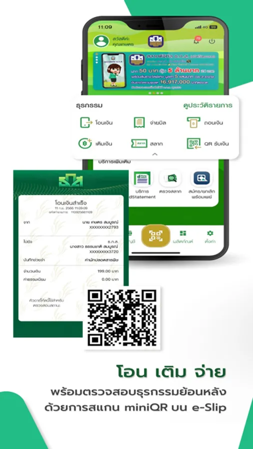 • ตรวจสอบความถูกต้องของ e-Slip ด้วยการสแกน miniQR บน e-Slip ของ ธ.ก.ส. และต่างธนาคาร