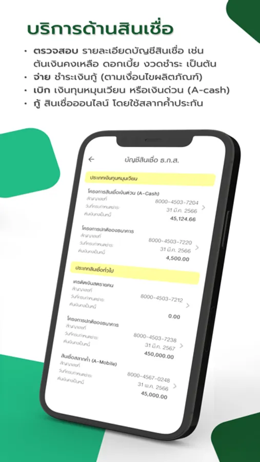 • ตรวจสอบยอดสินเชื่อคงเหลือ พร้อมชำระหนี้ และเบิกเงินสินเชื่อหมุนเวียน