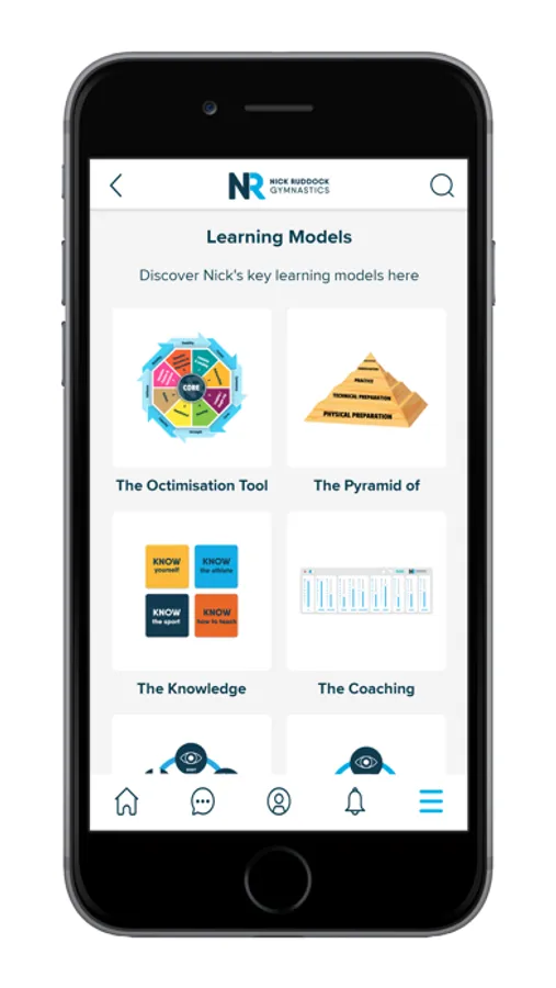 The NR Gymnastics app is a dedicated resource for members of Nick Ruddock's Gymnastics Growth Academy and Inner Circle programmes; featuring exclusive educational video content, community access, members only podcast, exercise library and more, all delivered from Nick Ruddock.