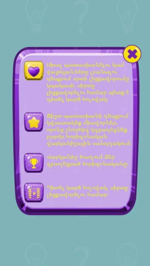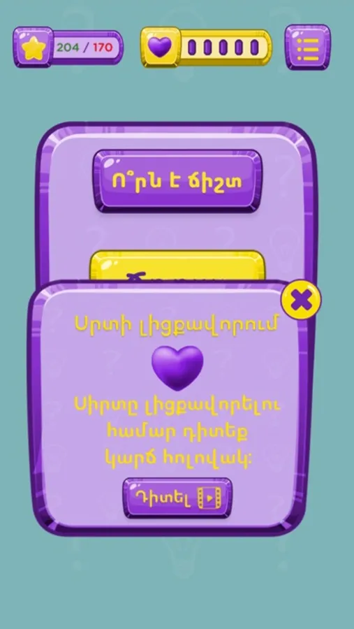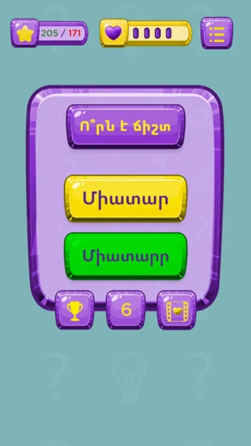 "Vorn e jisht" - an intellectual learning game that will help you remember and learn the spelling of a number of Armenian words, the spelling of which is often misused. If you find any mistakes in the game, you can inform us by writing to our e-mail: digibrain.pro@gmail.com Thank you for downloading and playing the game, have fun.