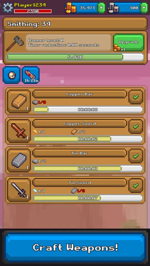 Skill Quest is an indie-developed idle/clicker/incremental skilling RPG, using retro styled pixel art, and containing a healthy mix of idling and tapping/clicking!