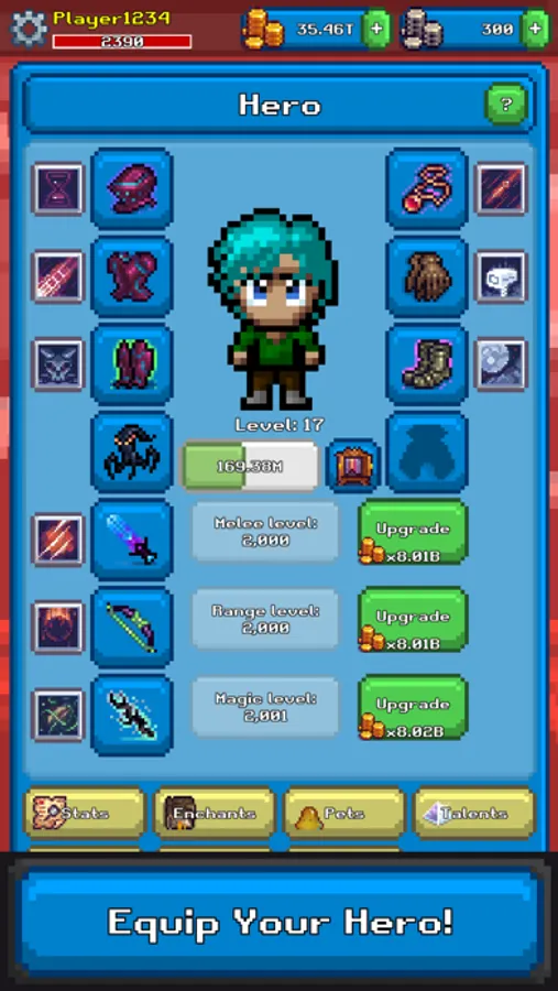 Collect and level up pets to help you on your adventures. Pets can also be sent on missions to gain materials needed to create powerful armor and weapon enchantments to further improve and customize your hero. Can you collect them all?