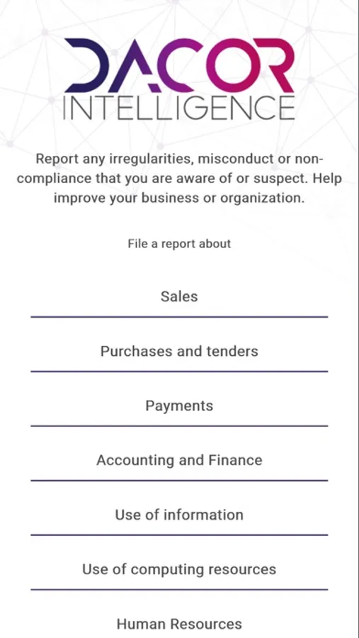 DACOR INTELLIGENCE pone a disposición de su empresa u organización una línea ética a través de la cual podrá comunicar cualquier irregularidad, mala conducta o incumplimiento del que tenga conocimiento o sospecha. Ayude a mejorar su empresa u organización