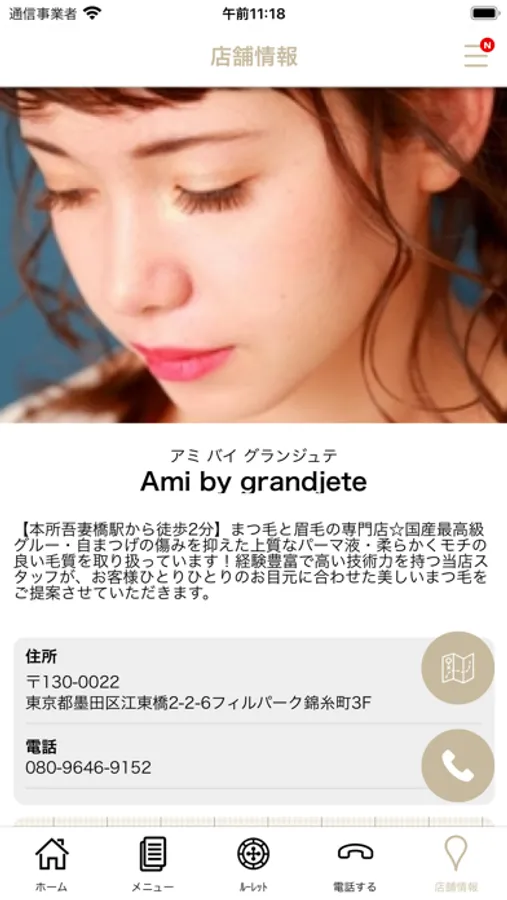 店舗のマップが表示され、地図アプリとも連携しているので、初めてのご来店の時も簡単に見つけることができます。