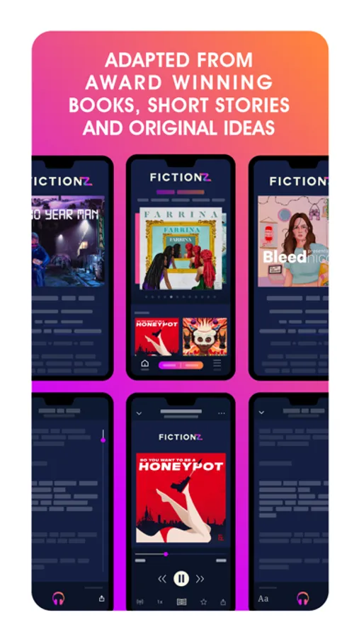 Fictionz is the first mobile app that streams premiere female-centric narrative podcasts to read and/or listen to ad-free.