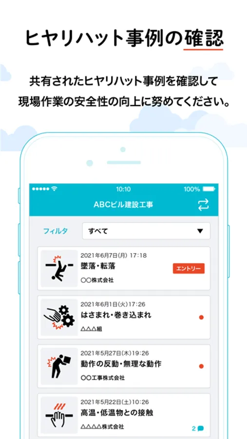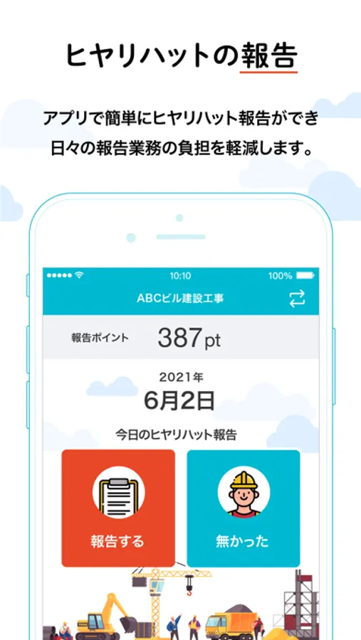 ヒヤリポでヒヤリハットを報告することによって、より安全な現場作業を実現するための活動に役立てられます。
