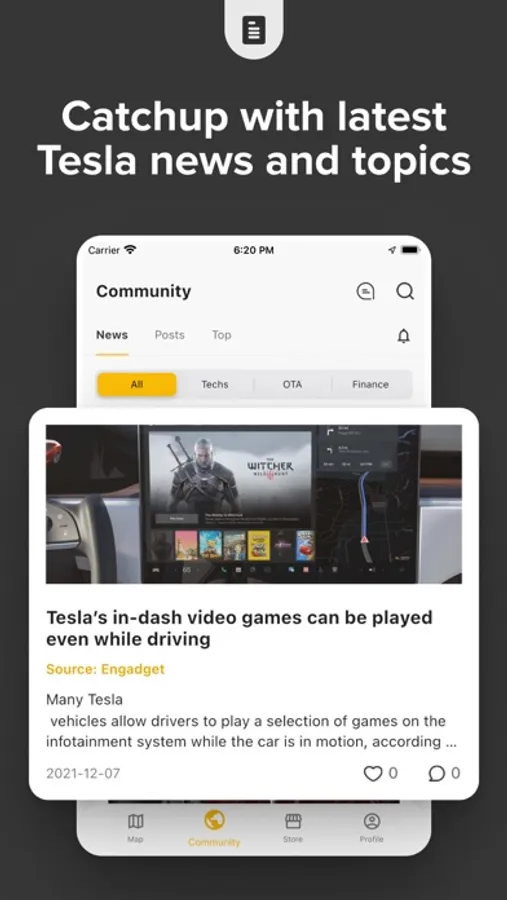 - read posts from the Tesla community