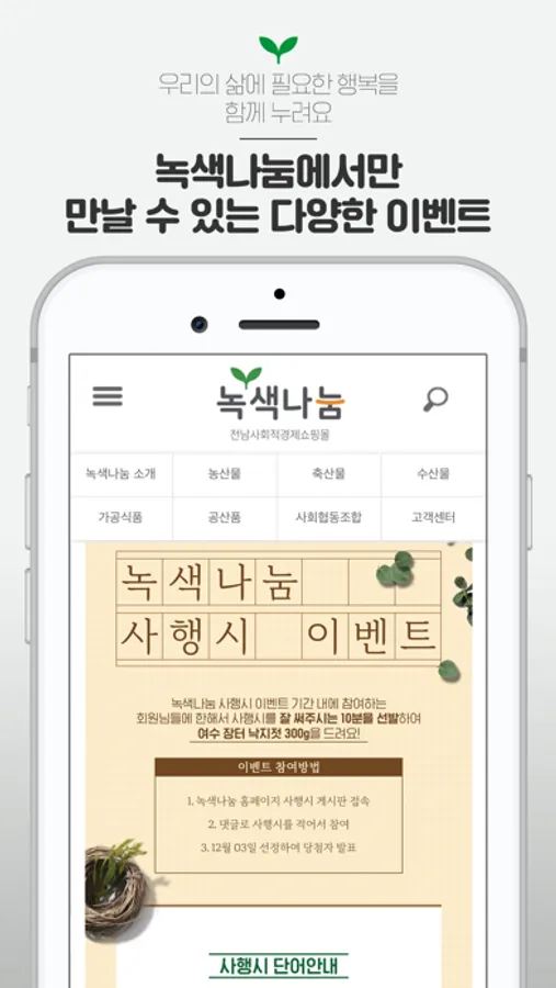 녹색나눔은 전라남도 내 사회적경제 기업의 우수한 상품과 서비스를 접할 수 있는 쇼핑몰입니다.