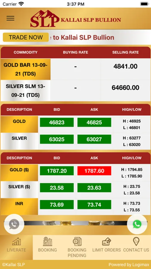 Kallai SLP Bullion offer Bullion - Gold & Silver at very competitive Prices. We have launched this mobile application to facilitate our clients to get live prices at any where and any time. Download this app to stay in touch with Bullion markets prices and news. This app brings you to monitor live spot prices for gold & silver, along with our commodity prices. We are happy to provide the new IOS application which will make our customers more convenient to know the price were ever they are and can purchase our gold and silver products on competitive price.