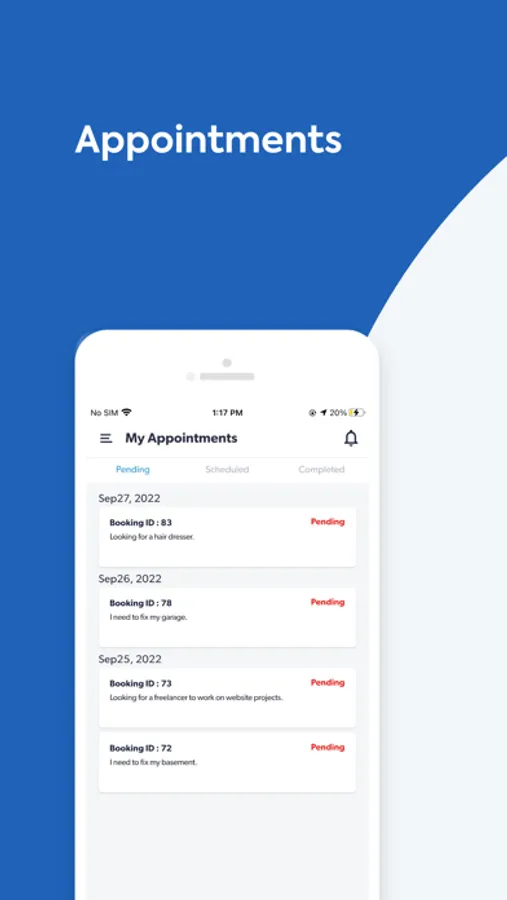 • View the list of all talented professionals near by and contact them directly via chat
