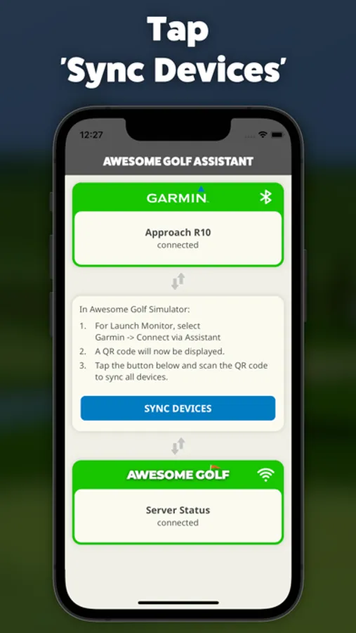 This app will connect to a supported Bluetooth Launch Monitor and communicate all its data to Awesome Golf Simulator, over an internet connection. Simply run the app, switch on your Launch Monitor and connect. Load up Awesome Golf Simulator on another device, select your Launch Monitor connection method as 'Assistant', to display a QR code. Sync the two devices by tapping 'Sync Devices' in this app, scan the QR code and you're all set; Awesome Golf Simulator is now connected to your Launch Monitor and ready to track golf balls!