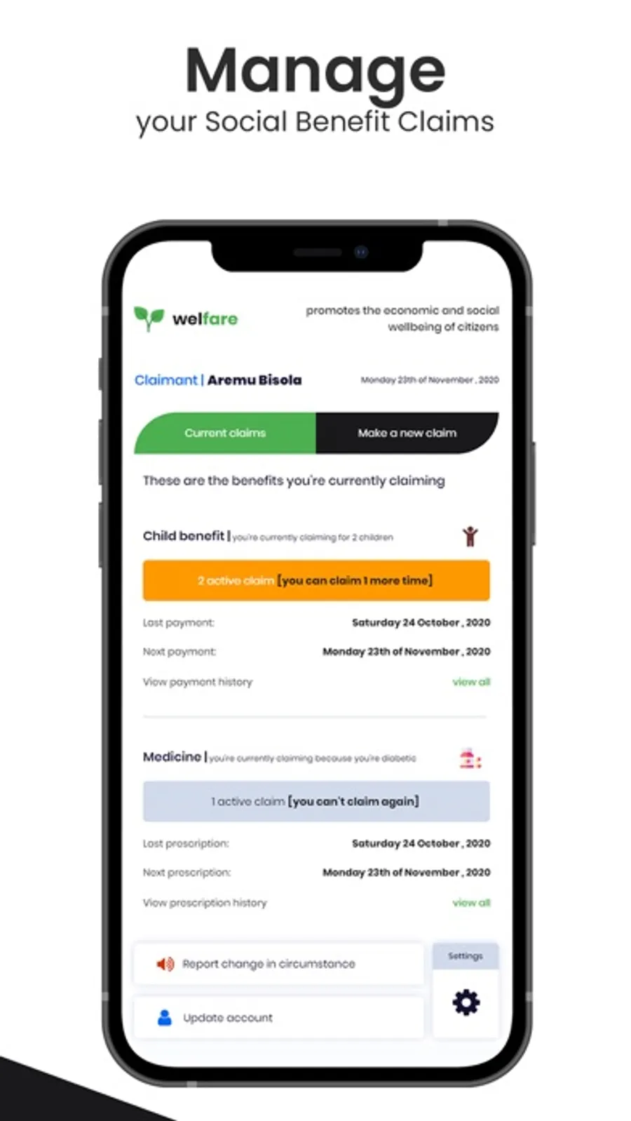 To enable Claimants, make Social Benefit application for Child, Medicine, Free School Lunch, Unemployment, and Housing Support Social Benefits