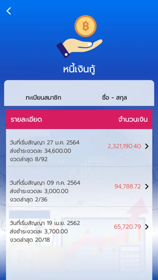 - ยอดคงเหลือสินเชื่อ และรายการเคลื่อนไหวของบัญชี