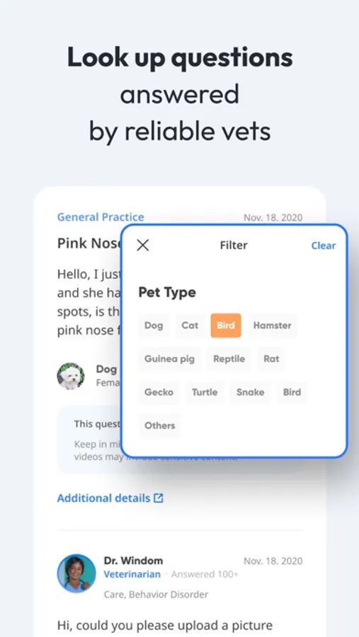 Online question-and-answers are asked by a wide range of people, from general users to experts, but the answers provided by licensed veterinarians are the most accurate and reliable. You may learn about your pet by asking and answering questions from trusted veterinarians, and help other friends by sharing good questions with them.