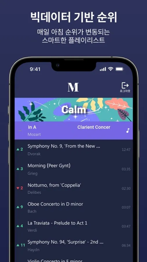 사용자의 성별, 연령대를 토대로 적합한 음악 리스트들을 제공하여 곡 선별 및 재생목록 생성의 번거로움을 줄일 수 있어 편리한 사용을 독려합니다.