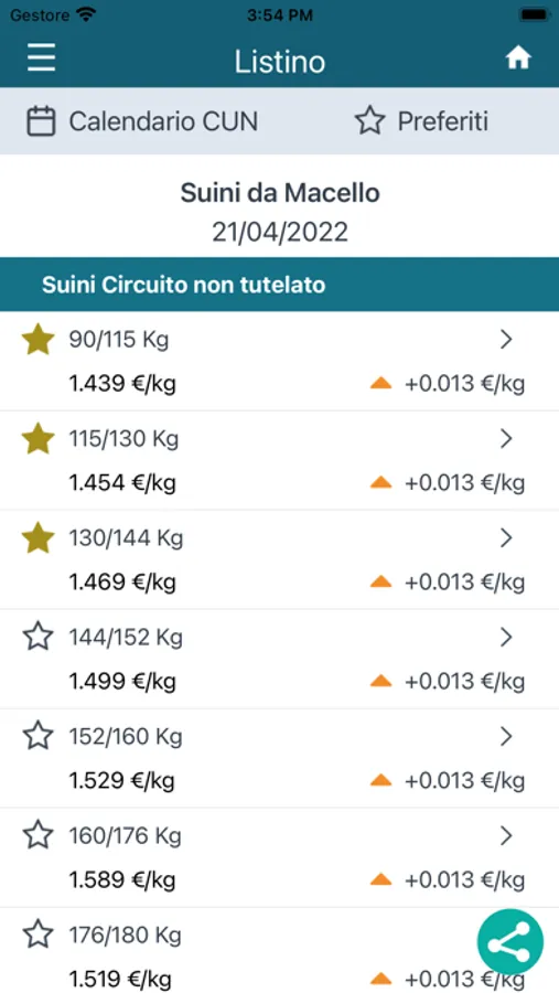 L’App Info CUN permette infine di condividere i listini tramite i più comuni sistemi di messaggistica e social-network.