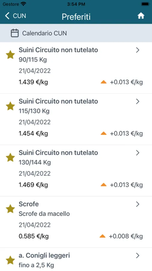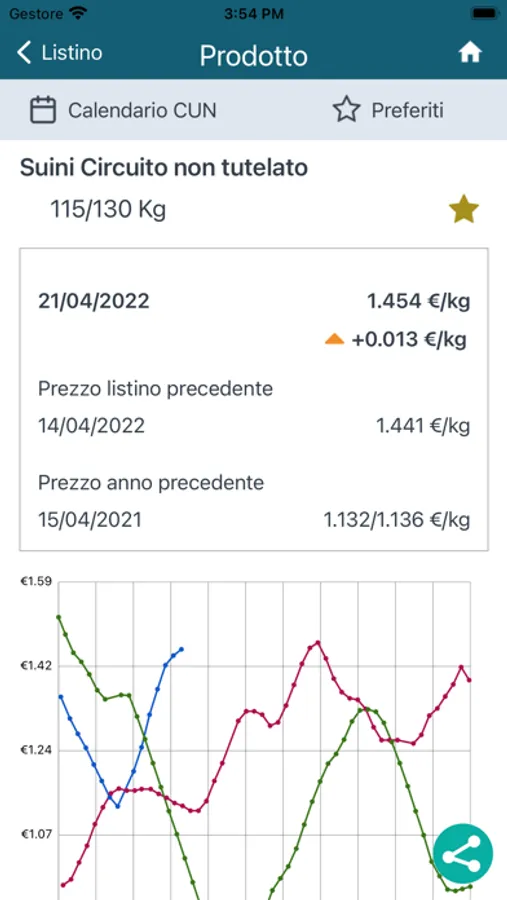 È possibile personalizzare la sezione “Preferiti” per avere una propria lista di quotazioni, per ciascun prodotto è inoltre possibile visualizzare:
