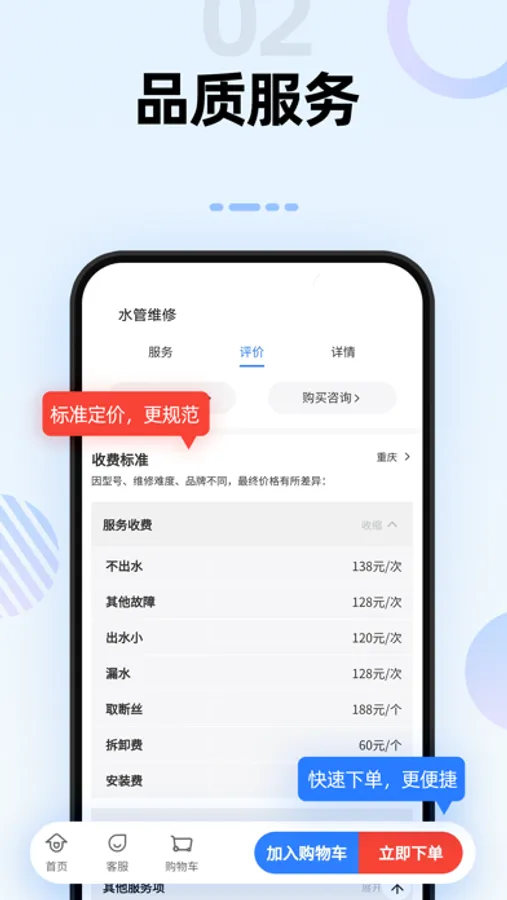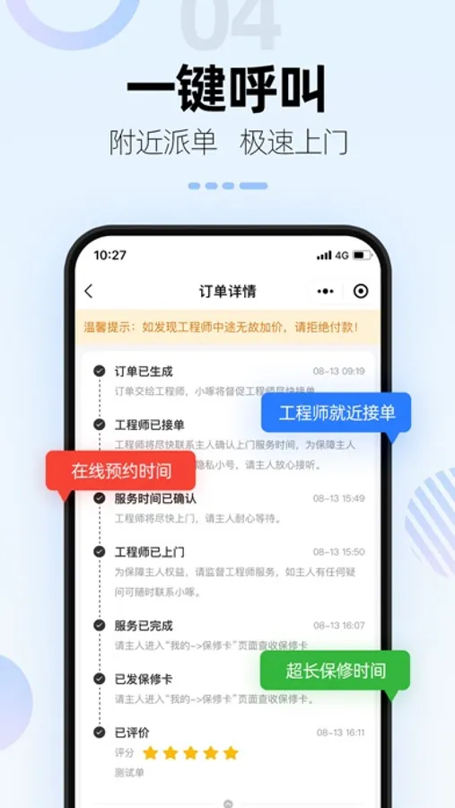 2.通过在线预约或电话预约两种方式预约服务,告知服务地址/手动填写订单