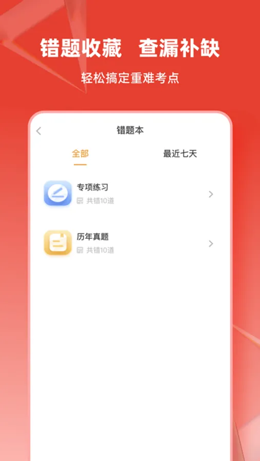 错题/收藏:自动记录练习错题,经典题型一键收藏,针对性进行巩固练习;