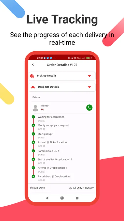 Pickup & Delivery: You can enter pickup and delivery location automatically, manually or by dropping the pin on the map. You can also select the request type you want - Express Request or Pickup Later.