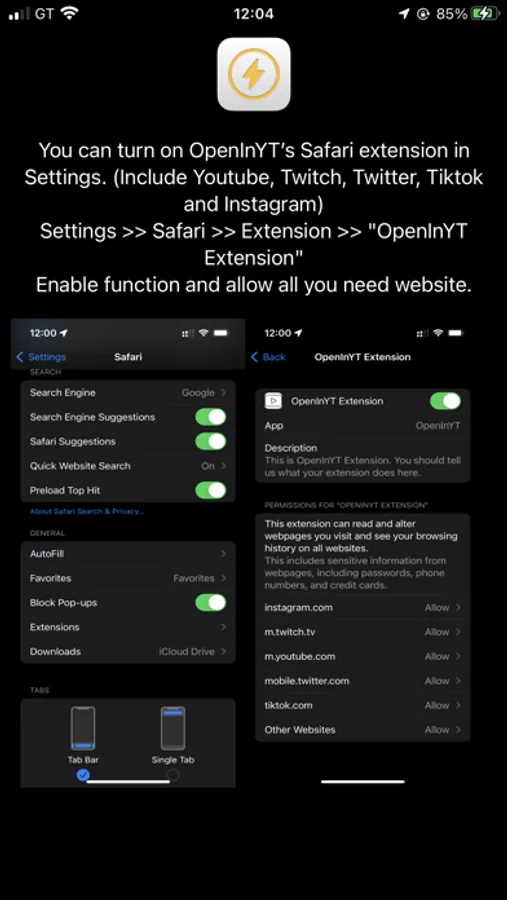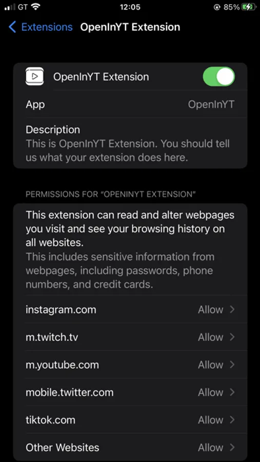 Safari Extension Open In Youtube, Twitch, Twitter, TikTok, Instagram, Spotify, Dcard and Discord
