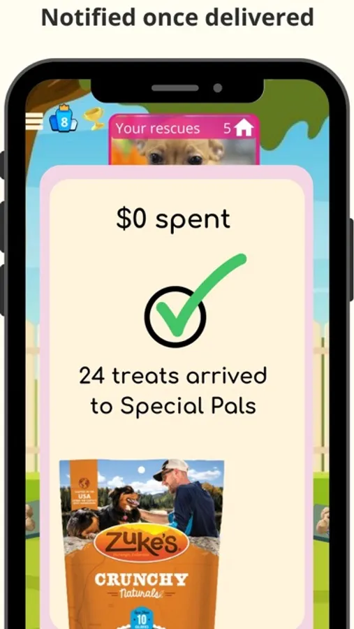 Treat will send the food to the shelter with your dog's name on it.
