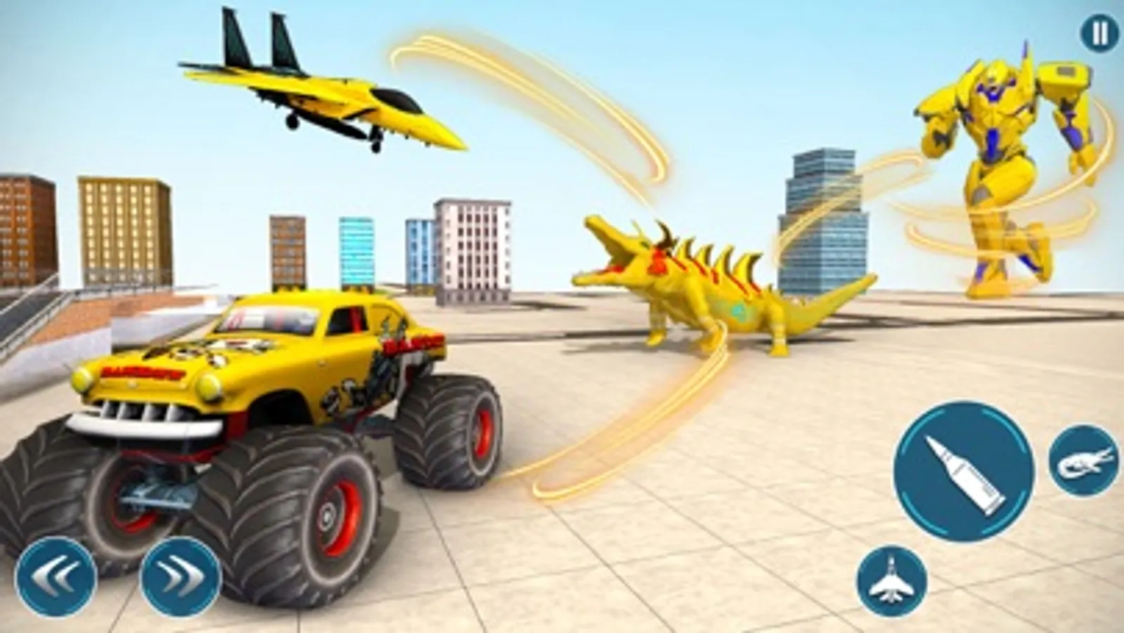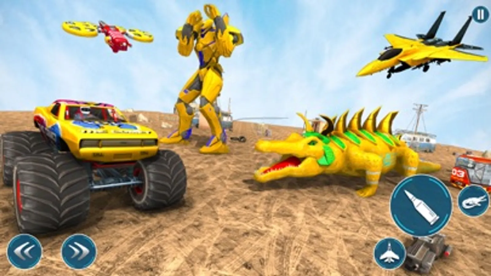 Get to the new ultimate robot crocodile monster truck transformation. Enjoy real robot war in a new monster truck robot transformation game. This robot crocodile fighter jet game has a lot of fighting against enemies in different challenging missions. You have to fight and win against powerful enemies with the help of different monster trucks, crocodiles, robots, and fighter jets with the fire of rockets missiles, and special power attacks