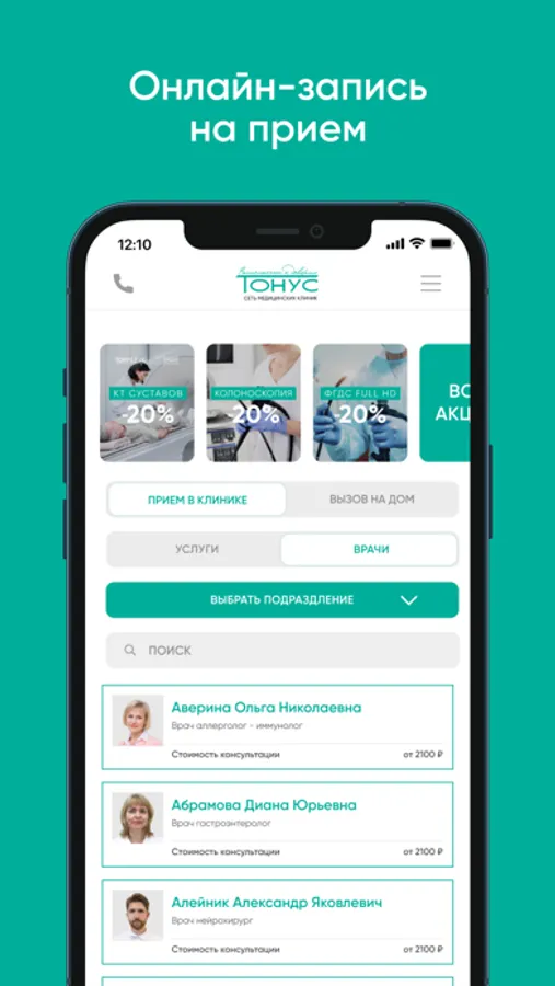 Мобильное приложение для удобного взаимодействия пациентов сети медицинских клиник «Тонус» со специалистами.