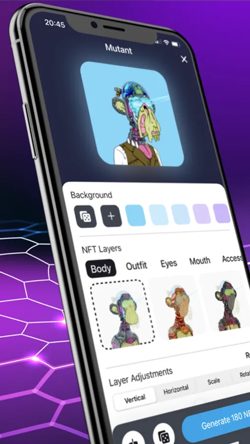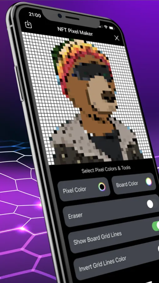 With the NFT Maker app now you can easily create your own amazing NFT using our high quality pre-made art or your own from Files or device gallery. Use CoreML AI art filters, add Text, Overlay and Stickers to your NFT. Auto-generate NFT Collections from layers in minutes. Save NFT with high resolution 3000px. Create NFT GIF and video. Create pixel art and pixelate any image from the device gallery. Find latest NFTs listed on the OpenSea marketplace and see the latest sold NFTs along with their price, name, and image. And learn how to start selling ready NFT. Upload NFT to IPFS, create metadata, share IPFS links with NFT Collections & NFT metadata.