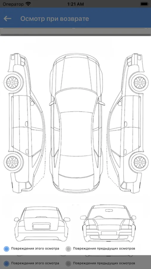 Мобильное приложение предоставляет возможность сотрудникам автопарка (таксопарка) проводить осмотр авто в рамках аренды (при выдаче/возврате и промежуточные) и вне аренды. Приложение предоставляет сотруднику список задач на проведение осмотров. Список осмотров и данные по клиентам и авто заполняются менеджерами автопарка (таксопарка) в десктопной версии.