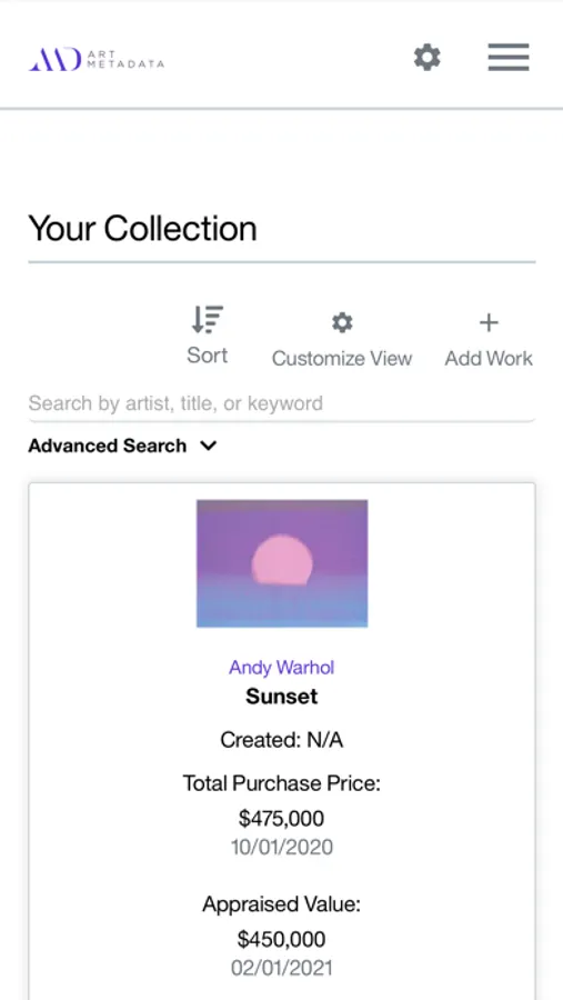 Art Metadata is a collection management and art price database for art collectors and their advisors. The free app is only available to existing Art Metadata clients.
