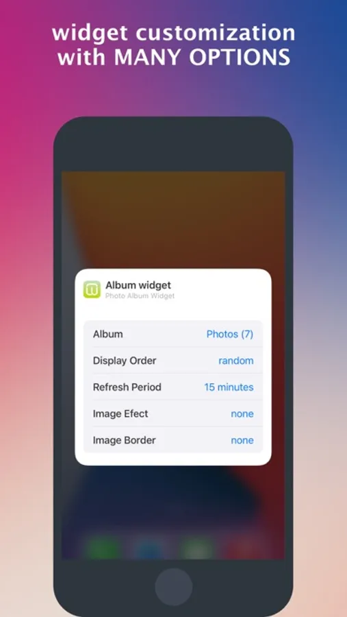 You can easily view photos from shared or local albums on iCloud on your home screen. No need to manually select photos. Just select your preferred album and you're done!