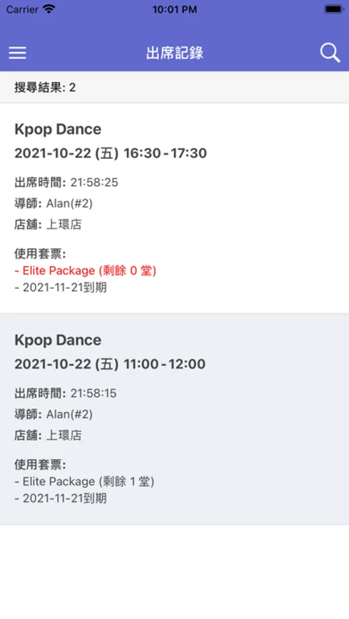 Battalion (ELITE) app provides members with real-time news information, package history, attendance history, timetable, and course/package prices. Members can create profile in the app.