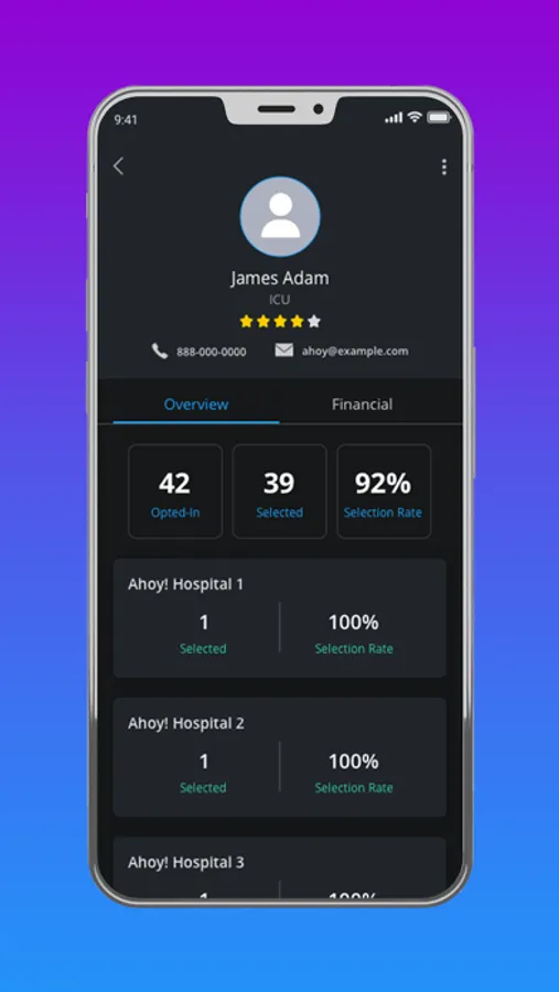 The on-demand app that allows health systems to monitor quality amongst medical professionals to determine when and where they work. Ahoy! On-Call will transform your free time into additional income by responding to requests from affiliated hospital systems for consultations and nurse shifts. Ahoy! On-Call provides unprecedented access to quality and service driven performance that health systems, hospitals, and patients deserve. Through the Ahoy! On-Call app, health systems and their credentialed medical professionals with the Ahoy! On-Call central command web landing page can initiate requests for consultant physicians or nurses to: