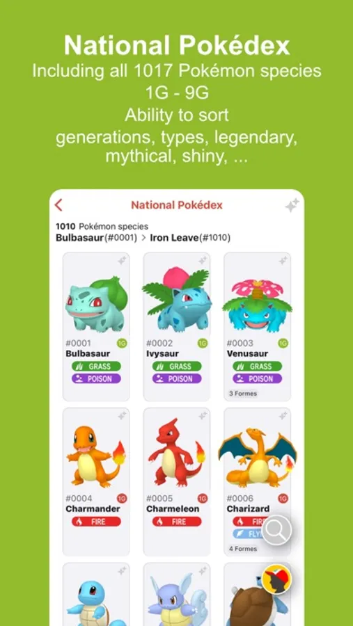 - National Pokédex (Including all 1017 Pokémon species)