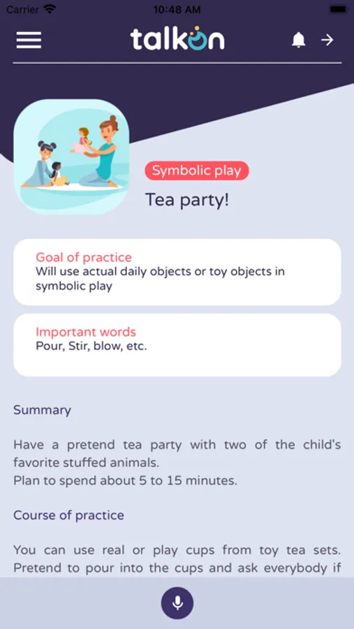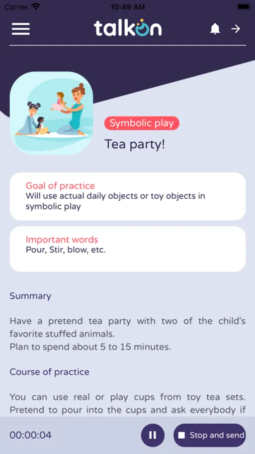 The talkon app, developed by speech-language pathologists (SLPs) helps clients and caregivers practice speech therapy in an intuitive, fun way for faster results.