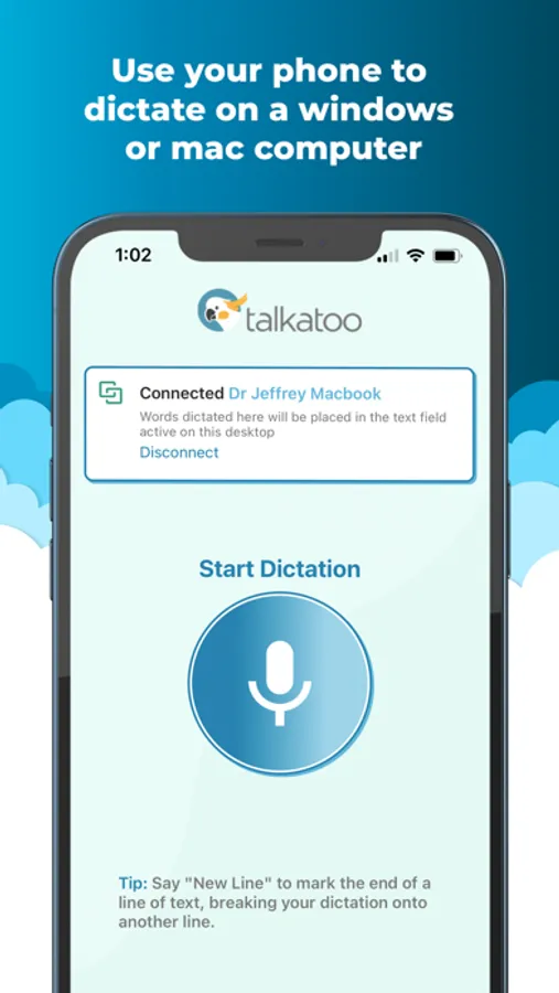 The Talkatoo MobileMic instantly turns your iPhone into a secure, wireless microphone and pairs with any Mac or Windows device where Talkatoo is running.