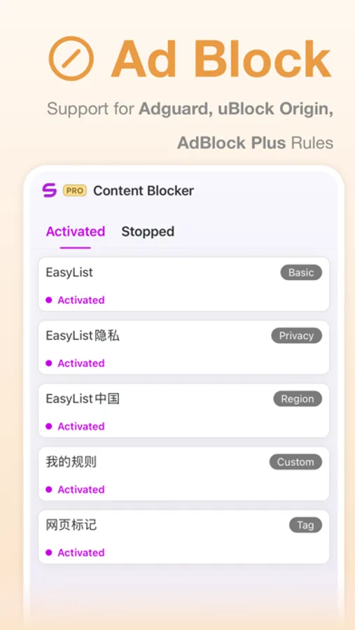 - Ad blocking: Support for Adguard, uBlock Origin, AdBlock Plus, and other filtering rules based on the EasyList specification, making your browsing experience safer and cleaner.