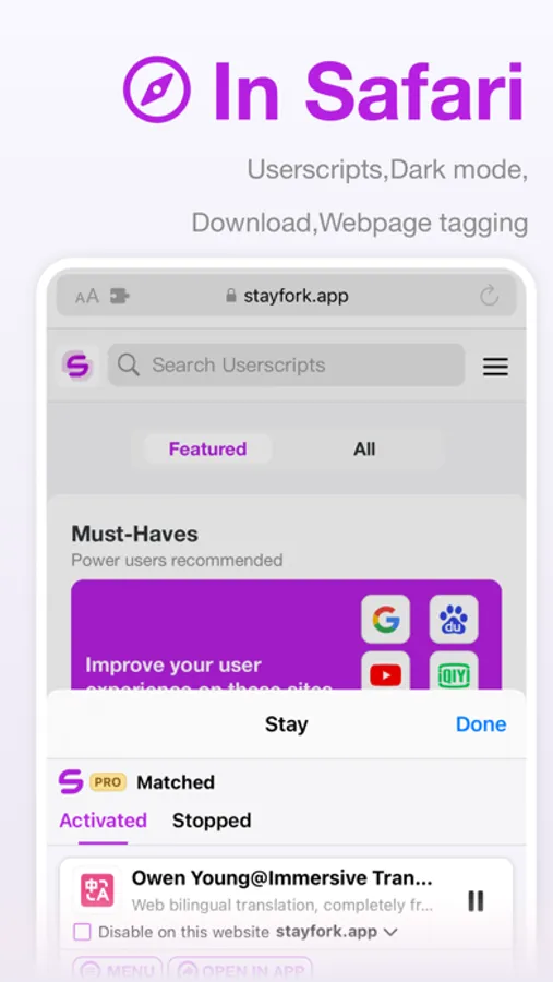 stayfork.org is Stay's official script hosting platform, which includes scripts that have been tested and approved by Stay and some testing users. These hosted scripts will be automatically updated and clearly identified as available on which platform.