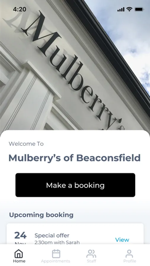 The Mulberry’s of Beaconsfield app makes booking your appointments and managing your loyalty points even easier. You're just a few taps away from feeling good and looking great!