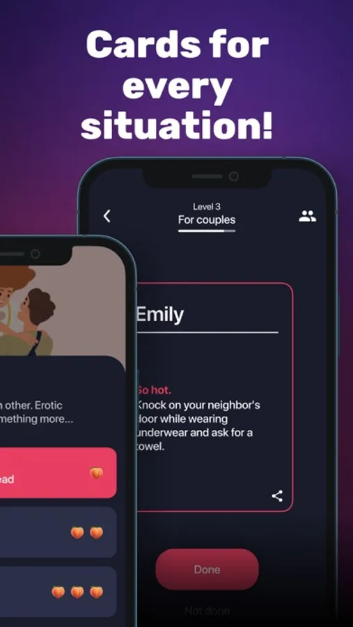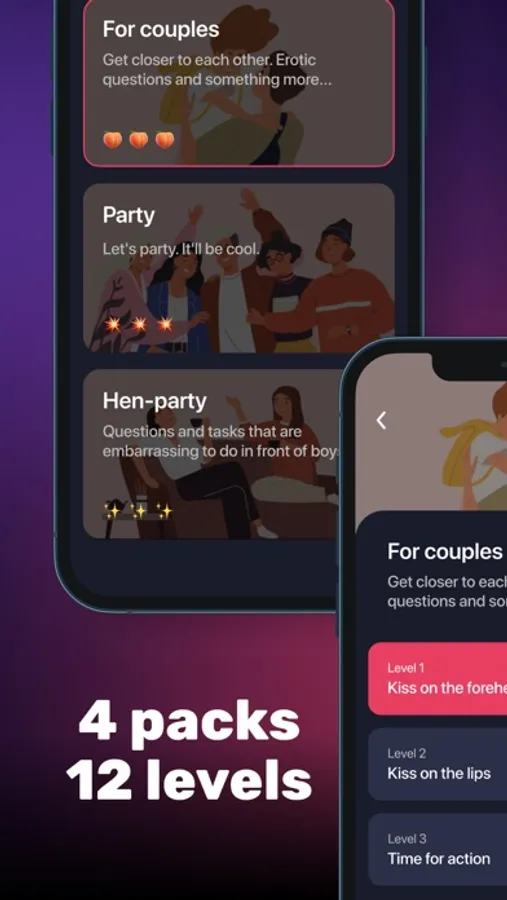 Pack "For couples" offers three intimacy levels.