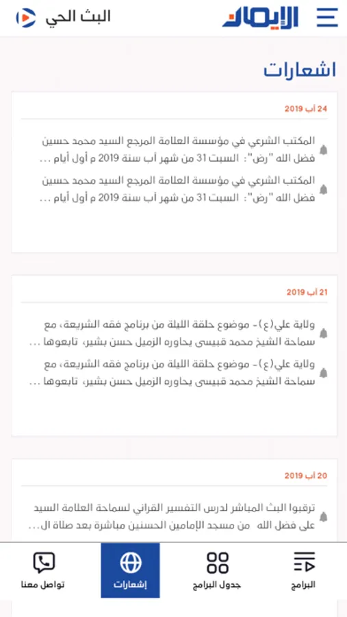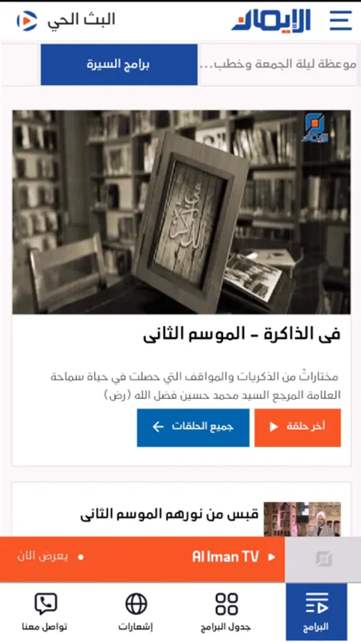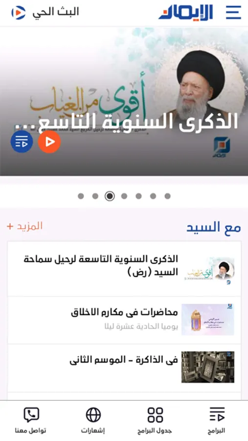 -متابعة كافة حلقات البرامج ومحاضرات سماحة العلامة المرجع السيد محمد (رض) .